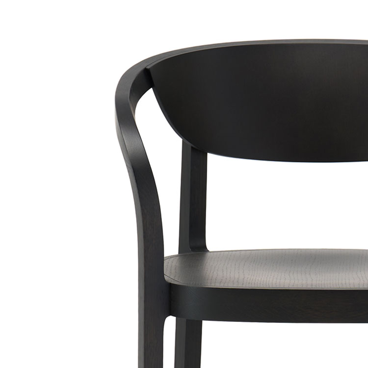 骨格となるフレームにはサスティナブルな方法で調達された国産ナラ材、背もたれには成型合板が使用されています。