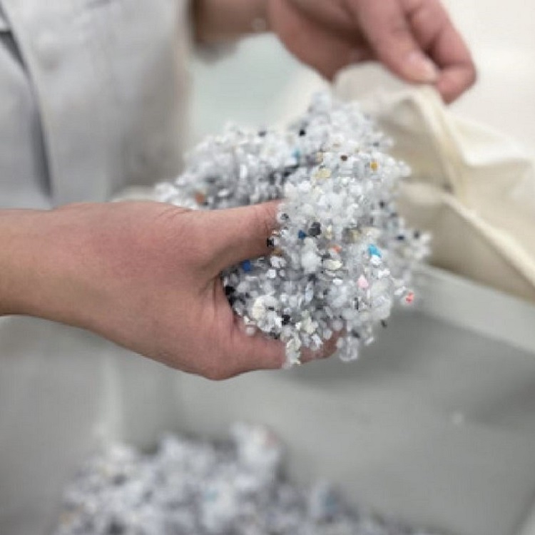 このフォーム材は、デッドストックやサンプル品など未使用のまま廃棄予定となった同社製のシューズを分解、粉砕して分別されたものです。